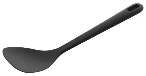 Prezentowana łopatka do ciasta o długości 28,5 cm bez problemu rozprowadzi ciasta, krem czy nadzienie, ułatwiając przygotowanie przeróżnych deserów. Dodatkowo dzięki elastyczności pozwoli zeskrobać resztki ciasta z miski, nie zarysowując jej - wykonana została z bezpiecznego dla żywności silikonu w czarnym kolorze. Odporność na temperaturę do 230°C sprawia, że można jej używać także do mieszania i rozprowadzania gorących mieszanek. Ergonomiczny uchwyt łopatki dobrze leży w dłoni, dzięki antypoślizgowej powierzchni nie wyślizgując się z dłoni, co zapewni komfort podczas jej używania. Praktyczny otwór na końcówce rączki pozwala na zawieszenie produktu na haczyku kuchennym, by znajdował się zawsze pod ręką i oszczędził miejsce w szafkach. Łopatka dostosowana została do mycia w zmywarce, można ją także bez problemów myć ręcznie.