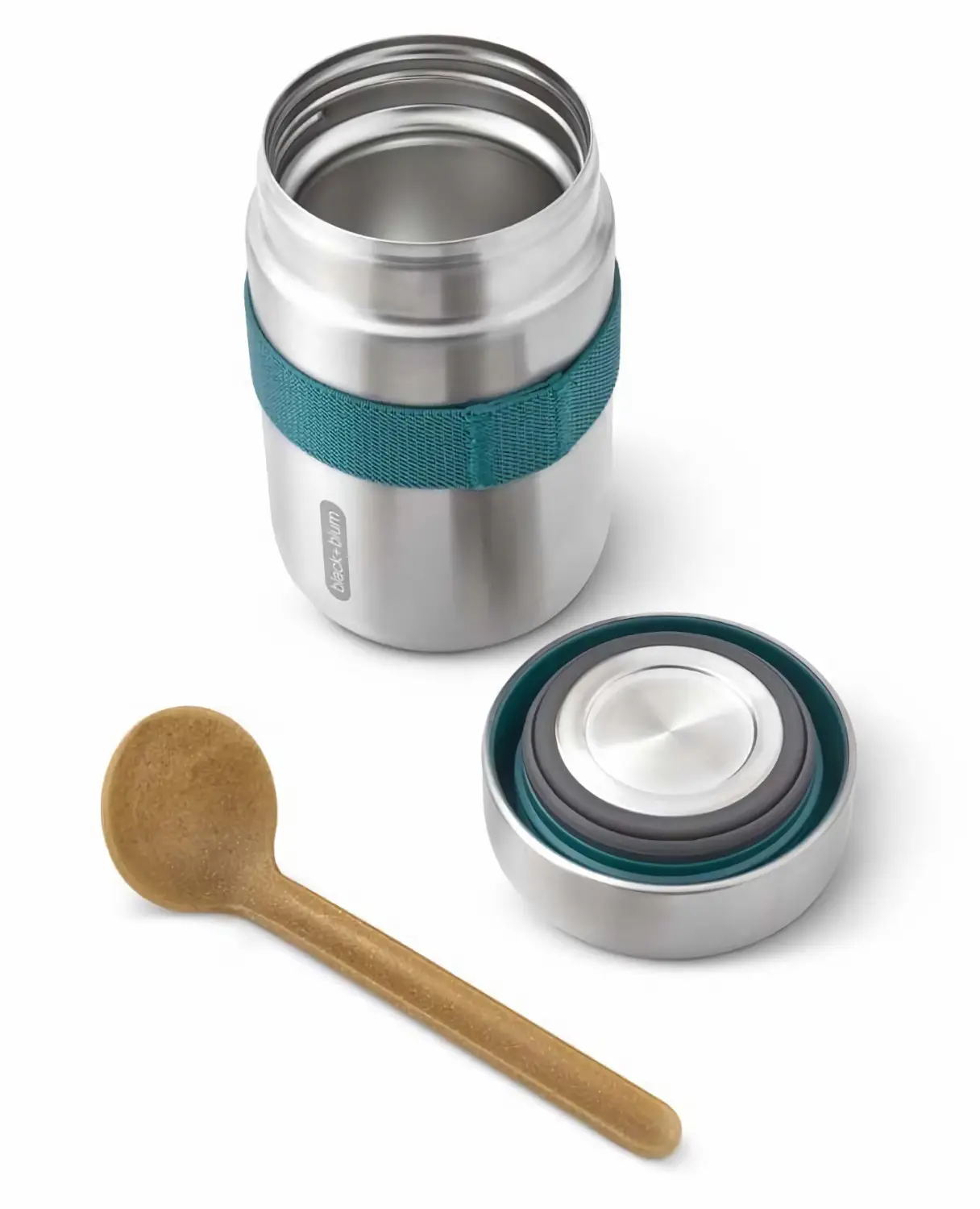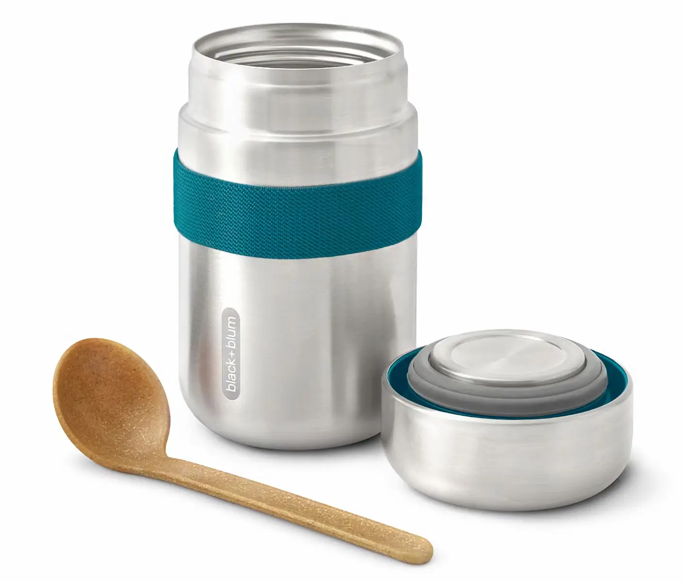 Nowoczesny, minimalistyczny design funkcjonalnych termosów obiadowych marki Black+Blum zaprojektowany został tak by ułatwić spożywanie posiłków poza domem, w ruchu czy w pracy. Mogące pojawić się przy użytkowaniu na wykonanej ze szczotkowanej stali nierdzewnej powierzchni zarysowania lub wgniecenia sprawią jedynie, że termosy zyskają na unikalności i charakterze. Zabezpieczona elastyczną gumką trzymającą ją w miejscu, wykonana z polipropylenu z dodatkiem naturalnego włókna drzewnego (20%), ergonomiczna łyżka zainspirowana została azjatyckimi łyżkami do zup i ze względu na długi uchwyt pozwoli z łatwością sięgnąć w głąb pojemnika.