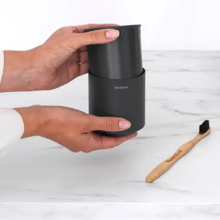 Kubek na szczoteczkę do zębów MindSet marki Brabantia w eleganckim to praktyczne i stylowe akcesorium łazienkowe. Zaprojektowany z myślą o funkcjonalności i estetyce, doskonale nadaje się do przechowywania szczoteczek do zębów oraz pasty, pomagając utrzymać porządek na umywalce.