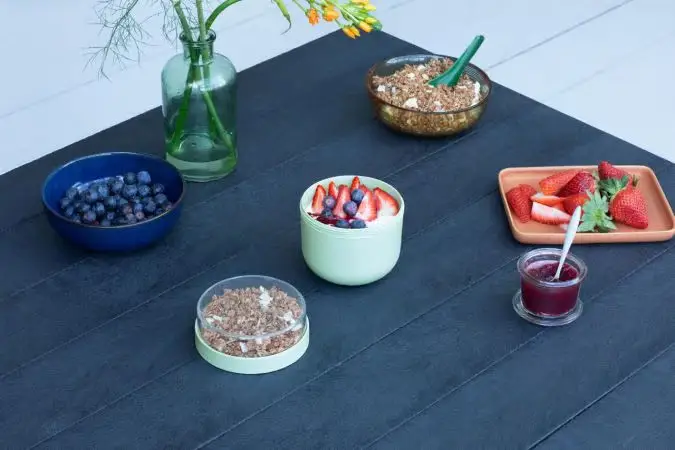 - Zawsze świeże składniki - pojemnik na dodatki, dzięki któremu orzechy, nasiona i granola pozostaną chrupiące.