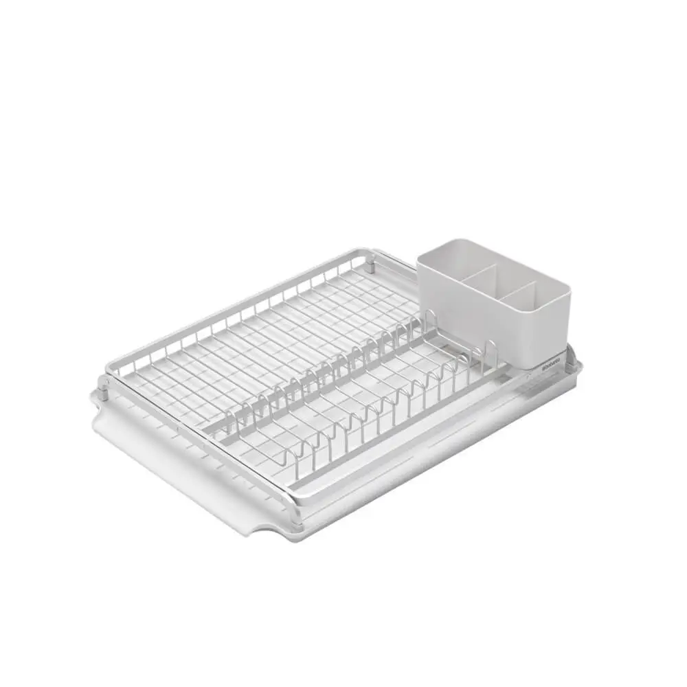 Suszarka do naczyń marki Brabantia posiada wydzielone strefy na garnki, szklanki i miseczki oraz na talerze. Oprócz tego została wyposażona w wyjmowany pojemnik na sztućce. Dzięki swojemu rozmiarowi sprawdzi się doskonale w małych kuchniach oraz tam, gdzie jest zmywarka. Kolorystyka gwarantuje, że wkomponuje się ona w każde wnętrze. Ustawimy na niej kilka talerzy, miseczki, kubki lub dowolne inne naczynie. Posiada ona również łatwy do przenoszenia koszyk na sztućce.