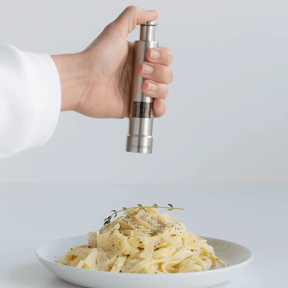Małe, poręczne kruszarki do soli i pieprzu doskonale nadają się do użytku stołowego. Ich obudowa wykonana jest ze stali nierdzewnej najwyższej jakości. Dzięki temu są one trwałe i łatwe do czyszczenia. Kruszarki zostały oznaczone literami "P" i "S", by ułatwić używanie i napełnianie. Dodatkowo wyposażono je w specjalne okienko, które sprawia, że zawartość jest widoczna z zewnątrz. Pozwala ono także na bieżąco kontrolować stan zawartości. Zestaw 2 kruszarek to doskonały pomysł na prezent.