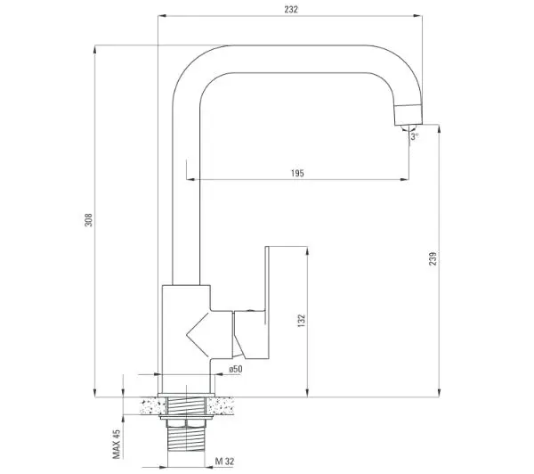 Deante -Bateria kuchenna ALPINA z prostokątną wylewką