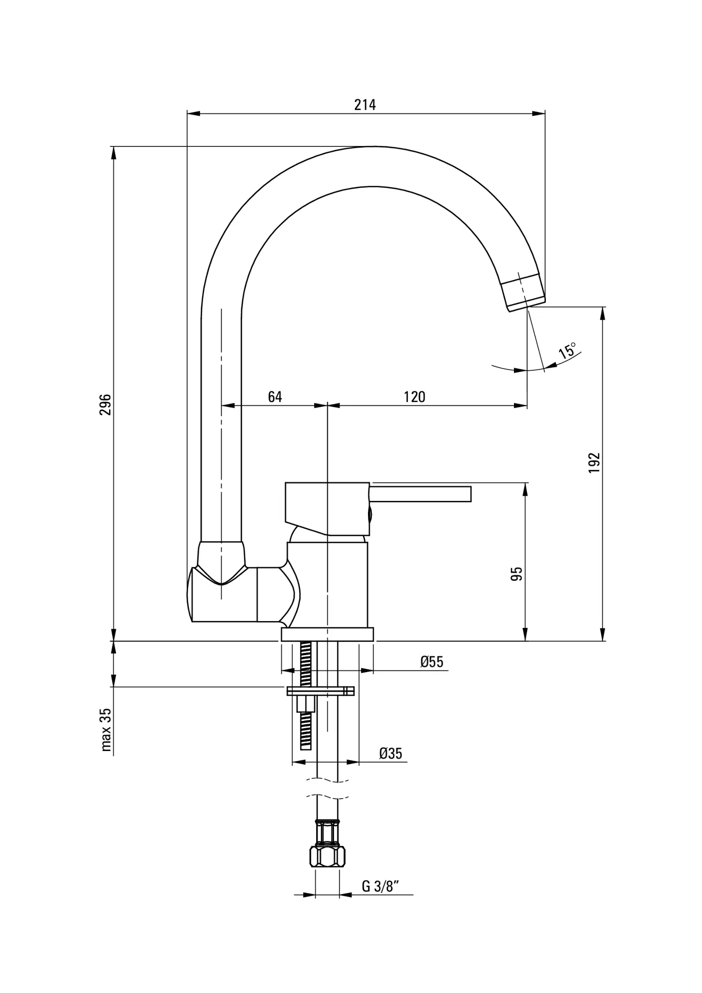 - Uchylna wylewka umożliwia zamontowanie baterii pod oknem