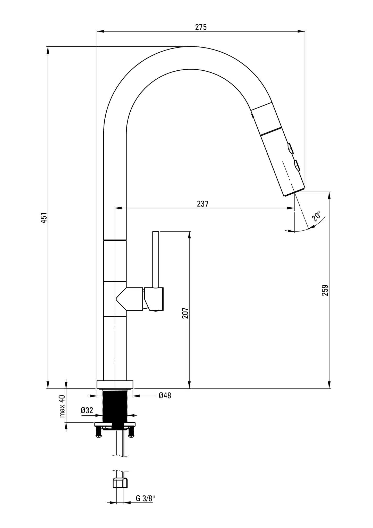 - Słuchawka 2-funkcyjna (strumień deszczowy i napowietrzony)