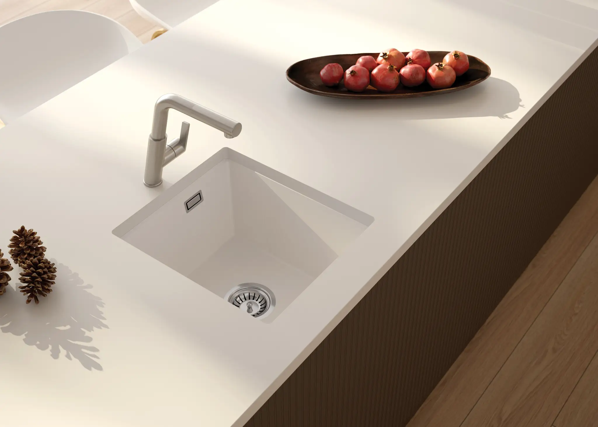 Bateria kuchenna sila marki Deante bez wątpienia przyciąga wzrok i wyróżnia się niezwykłym designem. Dostępna jest w aż 7 kolorach, dzięki czemu bez problemu dobierzesz odpowiedni model do swojego zlewu. Głowica baterii została wykonana z wysokiej jakości ceramiki, natomiast korpus z trwałego mosiądzu. Bateria wyposażona została w obracany korpus i wygodną wyciąganą wylewkę.