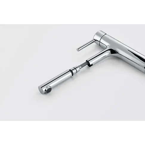 - Innowacyjny strumień laminarny – specjalna konstrukcja aeratora zapewnia zwarty i krystaliczny strumień wody redukujący rozpryski
