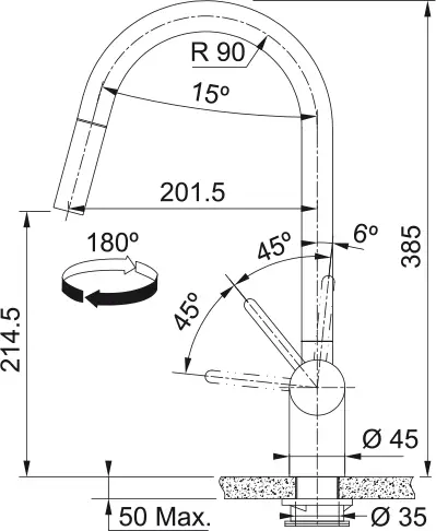- Zakres obrotu wylewki: 180°