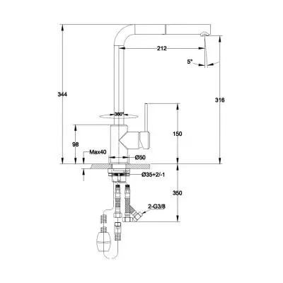 - Zawór zwrotny (odcinający powrót wody z wyciąganego natrysku)