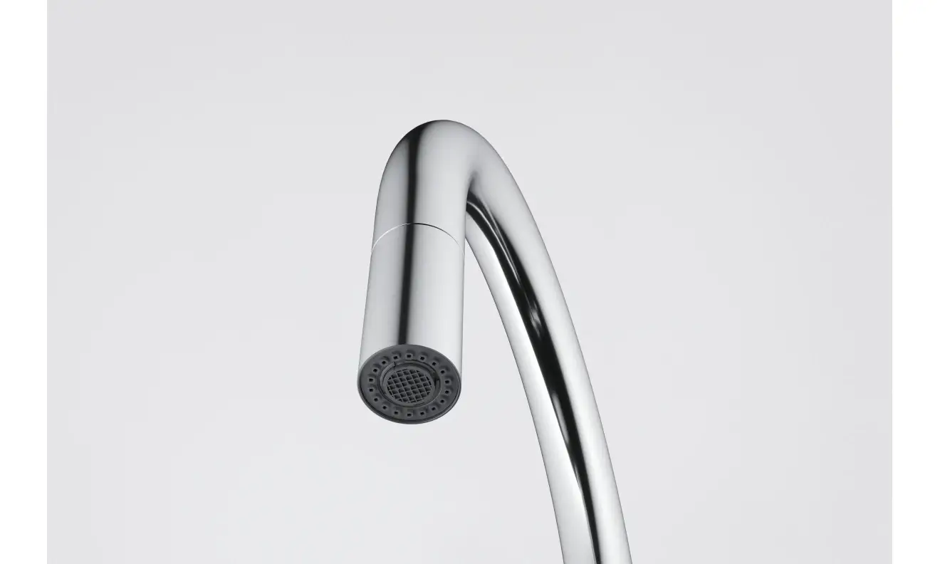 - Innowacyjny strumień laminarny – specjalna konstrukcja aeratora zapewnia zwarty i krystaliczny strumień wody redukujący rozpryski
