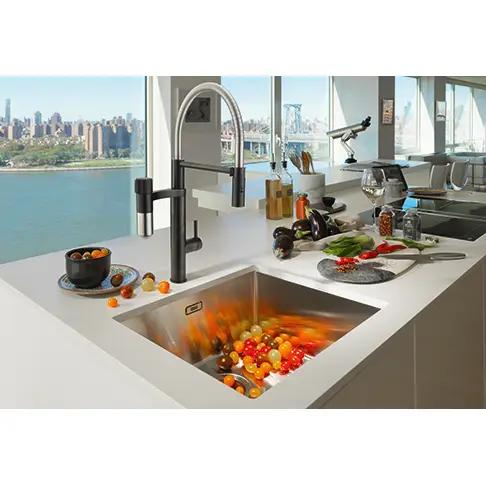 Po raz pierwszy na świecie — filtr, który nie wymaga instalacji podszafkowej, obniża koszty uzdatniania wody i oszczędza miejsce! Ta bateria to jedyny model na rynku z wymienną kapsułką w dodatkowej wylewce. Po prostu wymień kapsułki, gdy woda jest brudna, bez żadnej instalacji. I zaoszczędź miejsce w szafce zlewozmywakowej!