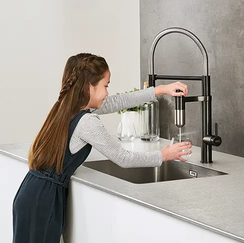 Dzięki baterii kuchennej Vital Semi-Pro zapomnisz o wodzie w plastikowych butelkach. Przedstawiamy kapsułkowy system FRANKE VITAL, który umożliwi Ci w wyjątkowo prosty sposób oczyścić wodę szybciej niż kiedykolwiek wcześniej.