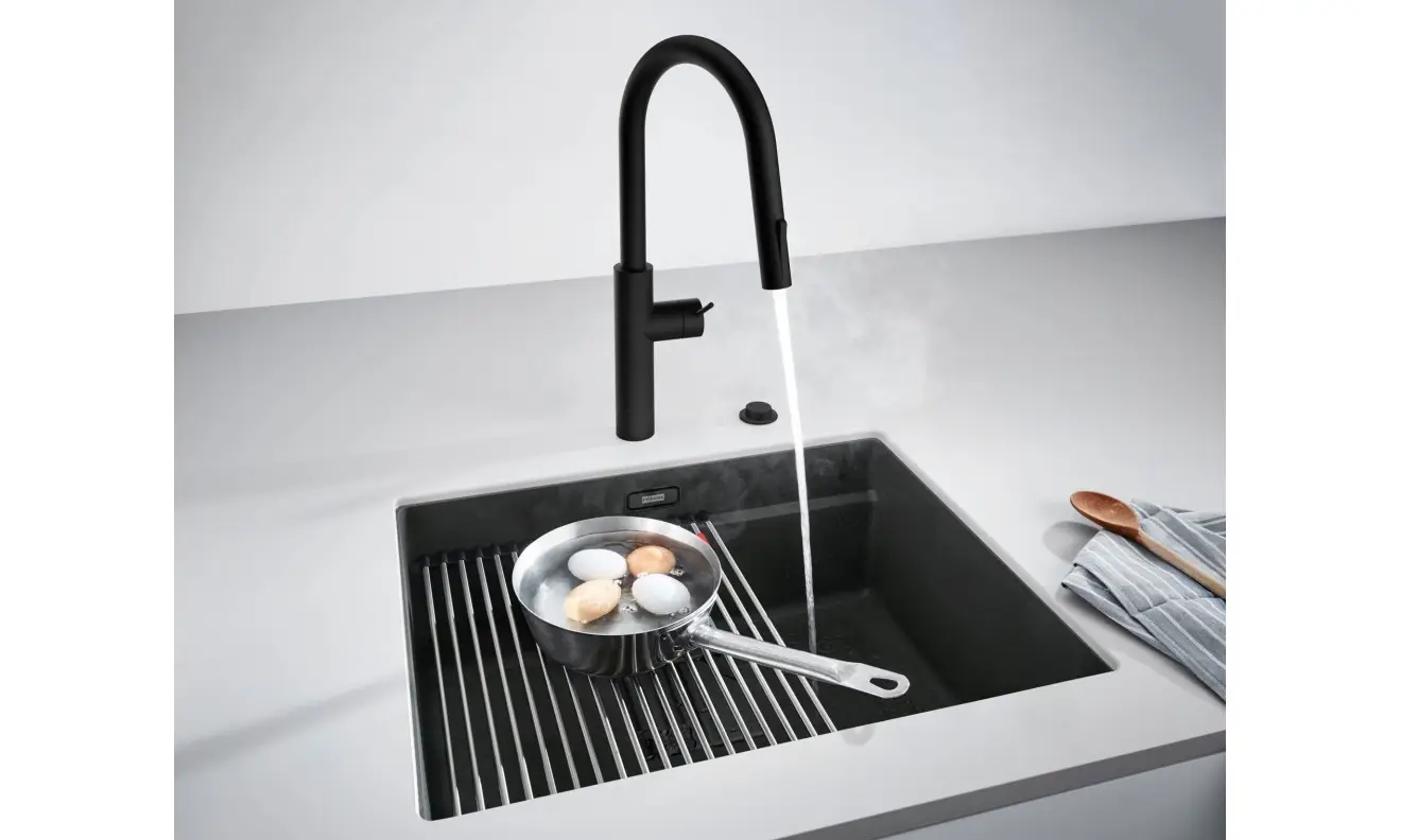 Wykonany z Fragranit +, który jest jednym z najtrwalszych materiałów na świecie, poddany obróbce ma subtelny połysk i jest naturalny w dotyku. Powierzchnia jest delikatnie teksturowana, ale nie porowata, co zapewnia wysoki standard higieny. Składający się w 80% z piasku kwarcowego i w 20% z bardzo twardej żywicy akrylowej, odporny Fragranit + od Franke zapewnia dożywotnie piękno.