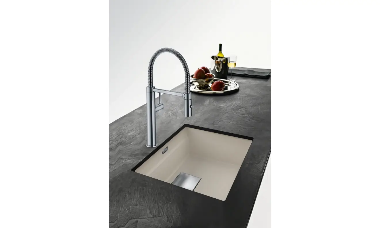 Wykonany z Fragranit +, który jest jednym z najtrwalszych materiałów na świecie, poddany obróbce ma subtelny połysk i jest naturalny w dotyku. Powierzchnia jest delikatnie teksturowana, ale nie porowata, co zapewnia wysoki standard higieny. Składający się w 80% z piasku kwarcowego i w 20% z bardzo twardej żywicy akrylowej, odporny Fragranit + od Franke zapewnia dożywotnie piękno.
