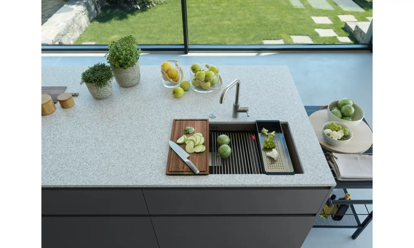 Zlewozmywak do podbudowy z linii Kanon posiada dwie funkcjonalne komory, które znacznie ułatwią utrzymywanie czystości w kuchni. Duża powierzchnia umożliwi umycie dużych garnków lub blach do pieczenia, mniejsza to idealna powierzchnia do mycia sztućców. Na szczególną uwagę zasługuje wewnętrzna krawędź, która pozwala na komfortowe korzystanie z rollmaty i wkładki ociekowej. Rozwiązania te umożliwiają dwa poziomy pracy, zwiększając tym samym funkcjonalność komory.