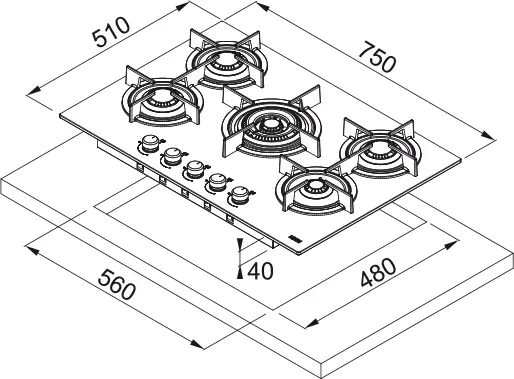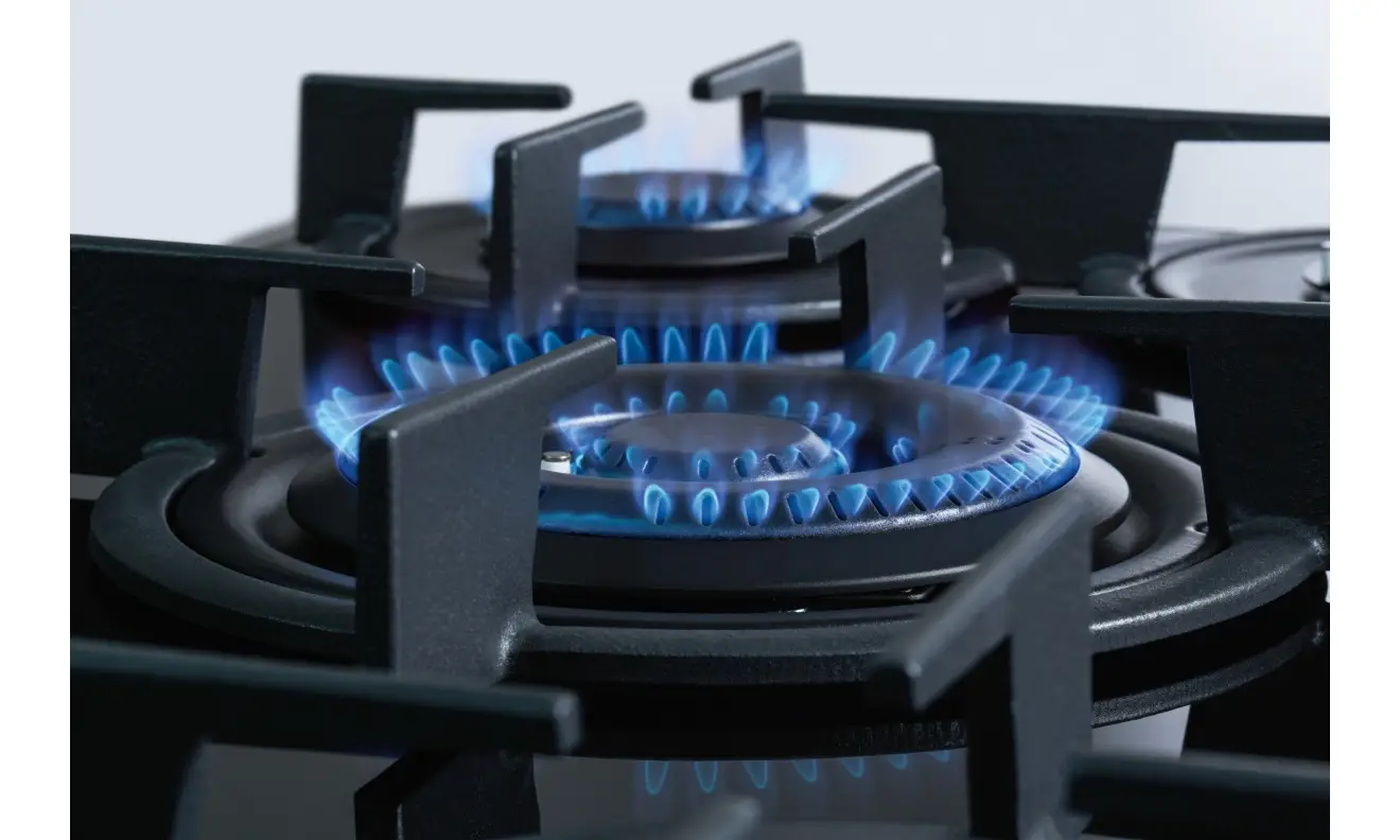 Płyta posiada 5 nowoczesnych i wysokowydajnych „płaskich” palników. Wyposażona jest w ruszty żeliwne (2 elementy), zapalarkę zintegrowaną w pokrętłach oraz zabezpieczenie przeciwwypływowe gazu. Dodatkowo można dokupić żeliwną podstawkę pod WOK.