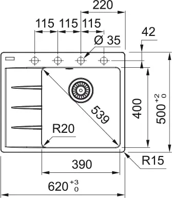 FRANKE - Zlewozmywak lewy Centro CNG 611-62 TL Onyx