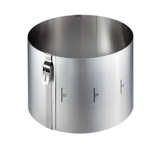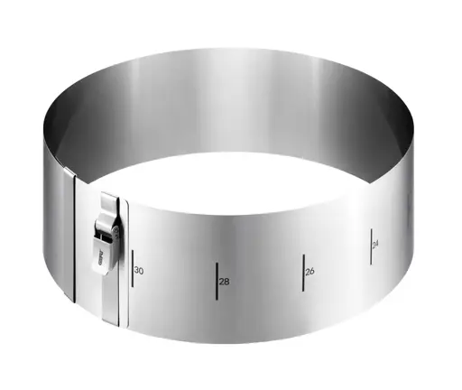 Prezentowany pierścień do ciast o wysokości 8,5 cm dzięki regulowanej średnicy o zakresie 16-32 cm będzie bardzo uniwersalny. Doskonale nada się on nie tylko do przygotowywania przepysznych ciast i tortów, ale i do robienia zapiekanek mięsnych lub warzywnych. Na zewnętrznej ściance umieszczono czytelną skalę do 2 cm oraz uchwyty pozwalające na płynną regulację rozmiaru oraz utrzymanie wybranej średnicy. Pierścień wykonany został z wysokiej jakości stali nierdzewnej. jego dodatkową zaletą jest łatwość w czyszczeniu - można go całkowicie rozłożyć, co pozwala na dokładne mycie. Ponadto nadaje się do mycia w zmywarce.