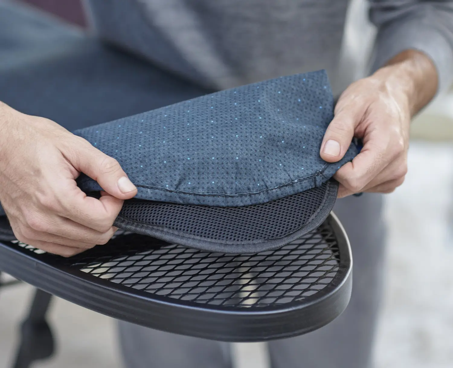 Prezentowana deska w czarnym kolorze z niebieskimi akcentami ma uniwersalny kształt. Posiada czterowarstwowy pokrowiec z Technologią Drip Shield: warstwa górna wykonana została w 100% z bawełny z krzyżującym się splotem, który zapewnia ochronę przed rozerwaniem, druga warstwa umożliwia przepływ pary, kolejna wykonana została z filcu i ma właściwości hydrofilowe oraz absorbujących wodę, ostatnia natomiast jest oddychającą bazą nieprzepuszczającą kropel. Z powodu swojej powłoki deska ta jest szczególnie polecana osobom posiadającym żelazka z generatorem pary. Jej wykonany ze stali stelaż o składanych w jedną stronę nóżkach sprawia, że jest ona łatwa w przenoszeniu. Zarówno ramę jak i pokrowiec deski należy w celu czyszczenia przecierać wilgotną ściereczką, przy czym nie należy używać w tym celu szorstkich ściereczek ani silnych chemicznych środków czyszczących.