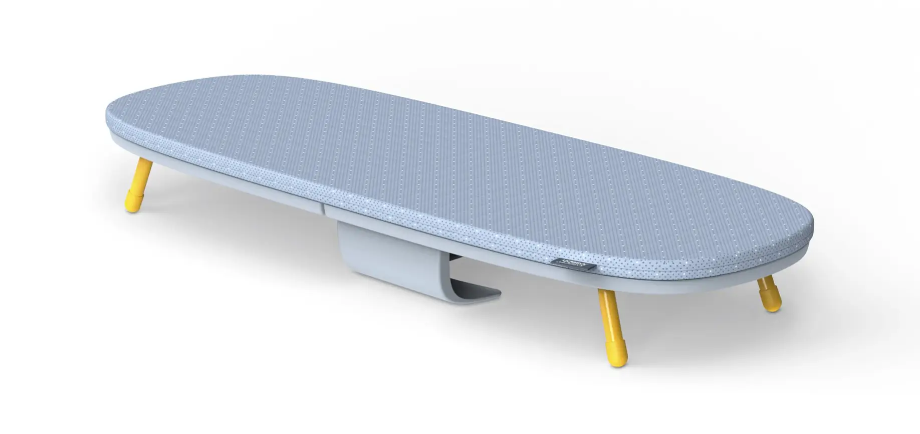 Prezentowana deska w szarym kolorze z żółtymi akcentami ma owalny kształt - doskonały do prasowania m.in. koszul, spodni, sukienek. Po rozłożeniu daje ona powierzchnię do prasowania o wymiarach 90 na 33 cm. Posiada zdejmowany dwuwarstwowy pokrowiec: górna warstwa wykonana została w 100 % z bawełny z krzyżującym się splotem, dzięki któremu jest odporna na rozerwania, dolna natomiast wykonana jest z filcu. Dodatkowo pokrowiec posiada ściągacz do regulacji, co sprawia że nie będzie się on zsuwał podczas prasowania ubrań. Stalowy stelaż deski wyposażony został w wyciągane podpórki z antypoślizgowymi zakończeniami, które pozwolą postawić ją wygodnie. Zarówno stelaż jak i pokrowiec należy czyścić ręcznie, przecierając wilgotną ściereczką bez użycia silnych środków czyszczących. W komplecie dołączono uchwyt do zawieszenia.