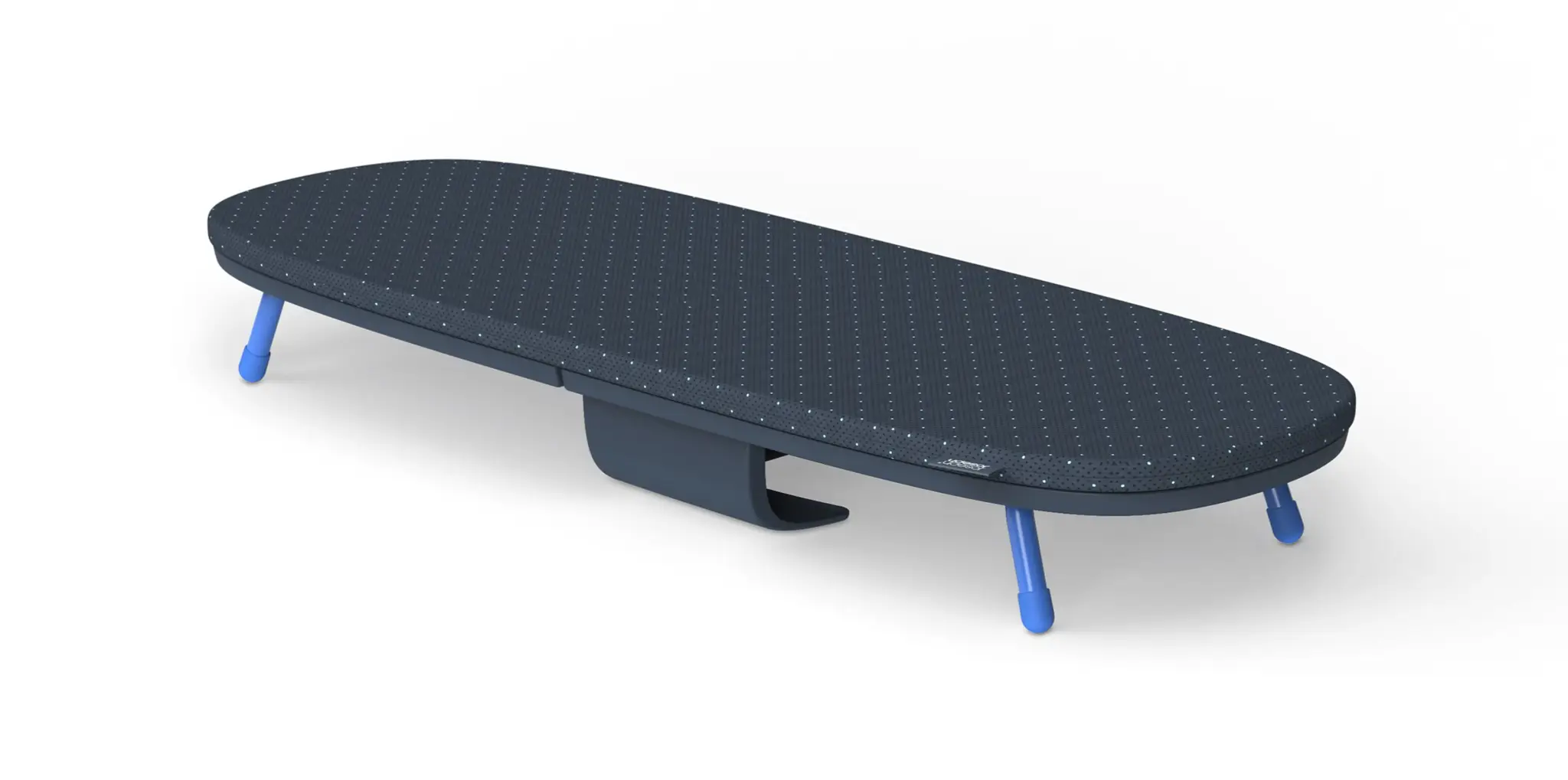 Prezentowana deska w czarnym kolorze z niebieskimi akcentami ma owalny kształt - doskonały do prasowania m.in. koszul, spodni, sukienek. Po rozłożeniu daje ona powierzchnię do prasowania o wymiarach 90 na 33 cm. Posiada zdejmowany trzywarstwowy pokrowiec z technologią DripLock: górna warstwa wykonana została w 100 % z bawełny z krzyżującym się splotem, dzięki któremu jest odporna na rozerwania, środkowa wykonana jest z filcu, natomiast ostatnia - wodoodporna - z poliestru z powłoką poliuretanową. Ponadto pokrowiec posiada ściągacz do regulacji, co sprawia że nie będzie się on zsuwał w trakcie prasowania ubrań. Stalowy stelaż deski wyposażony został w wyciągane podpórki z antypoślizgowymi zakończeniami, które dodatkowo poprawią komfort użytkowania. Zarówno stelaż jak i pokrowiec należy czyścić ręcznie, przecierając wilgotną ściereczką bez użycia silnych środków czyszczących. W komplecie dołączono uchwyt do zawieszenia.