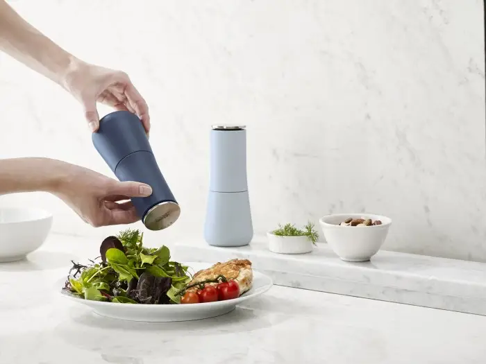 Młynki charakteryzuje otwór mielący który po postawieniu będzie się znajdować na górze młynków dzięki czemu można uniknąć niepotrzebnemu brudzeniu się blatu czy też obrusu. Produkty należy myć ręcznie.