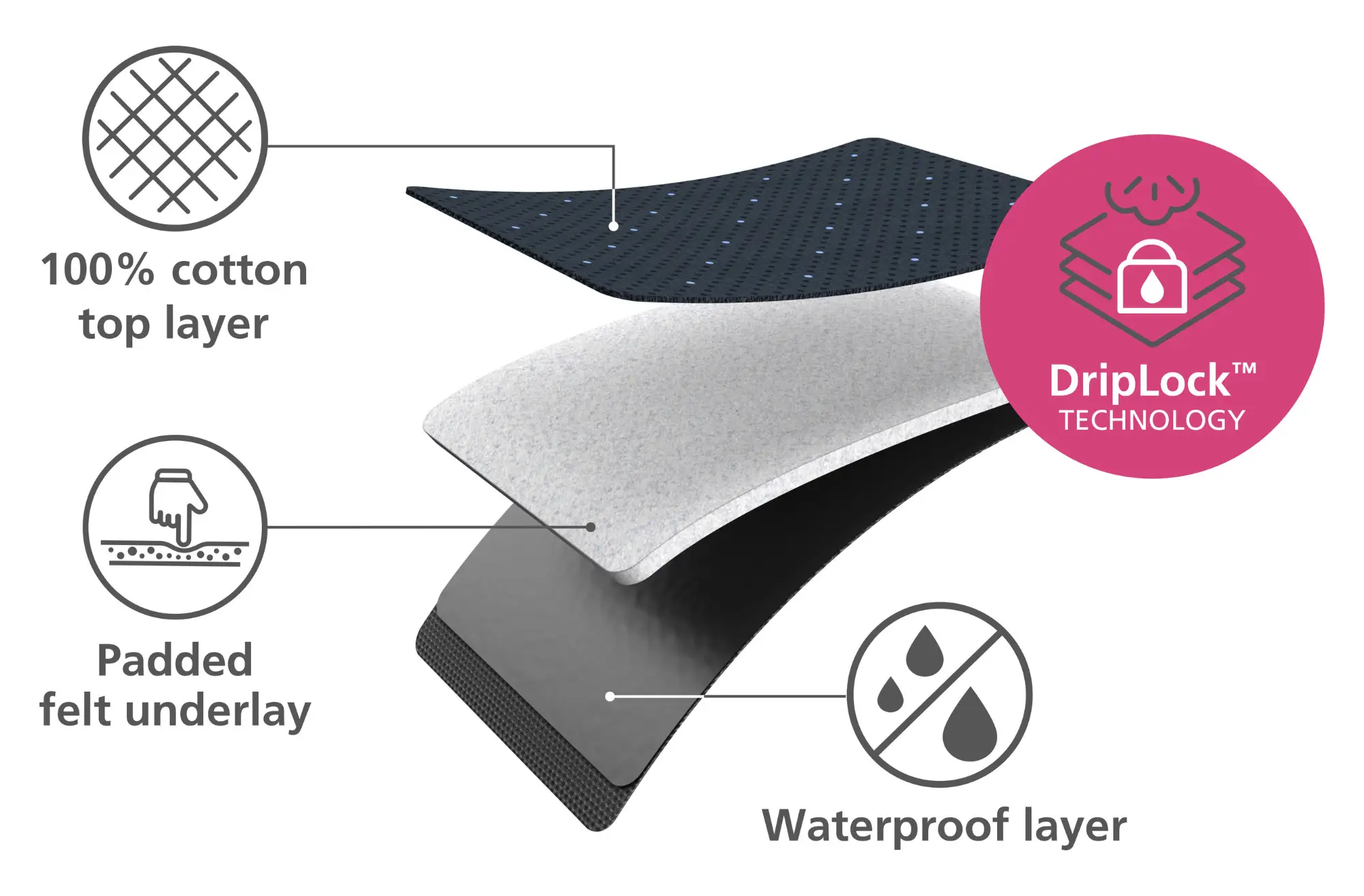 Prezentowany pokrowiec z technologią DripLock do deski Pocket Plus ma ciemny kolor i wymiary 33 x 90 cm. Wykonany został z 100% bawełny o krzyżującym się splocie - co sprawia, że jest odporny na rozerwanie, filcu o grubości 5 mm i materiału wodoodpornego (poliestru z powłoką poliuretanową) - dzięki czemu idealnie nadaje się do żelazek na wodę. Pokrowiec posiada ściągacz do regulacji, który zapobiegnie zsuwaniu się podczas prasowania ubrań. W celu czyszczenia należy go przecierać wilgotną ściereczką bez użycia silnych środków czyszczących. Produkt zastąpi dołączony do deski Pocket Plus pokrowiec, gdy tamten się zużyje.