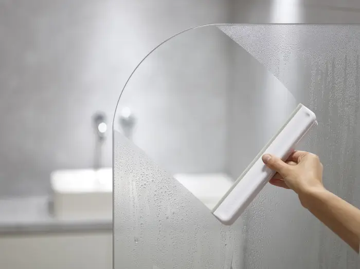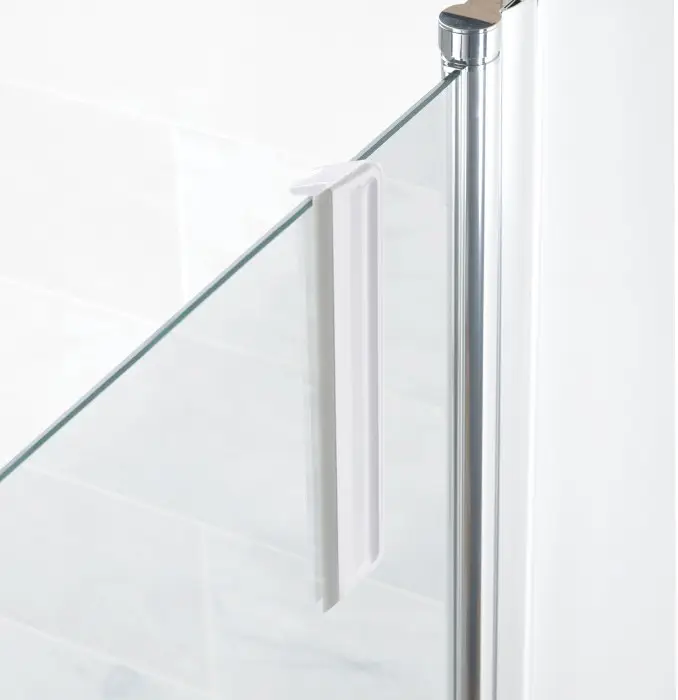 Ściągaczka do oczyszczania kabin prysznicowych i luster, wąska forma zezwala na oszczędzająca miejsca w twojej łazience a elastyczna silikonowa końcówka ściągająca zapewni dokładne czyszczenie powierzchni szklanej nawet o zakrzywionych kątach. Ściągaczka wyposażona została w haczyk który ułatwi przechowywanie narzędzia.