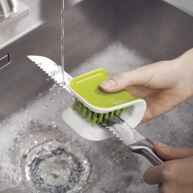 Innowacyjnym rozwiązaniem może poszczycić się szczoteczka BladeBrush firmy Joseph Joseph. Zaprojektowana została do mycia sztućców i noży. Szczoteczka do sztućców BladeBrush to produkt angielskiej marki Joseph Joseph z serii Cooking o wymiarach 7,6 x 5,2 x 8 cm. Produkt został wykonany polipropylenu. Szczoteczka w swoim kształcie i wykonaniu przypomina zaciśnięte szczęki, które pozwalają na bezpieczne mycie ostrza z obu stron. Powierzchnia szczotki jest chropowata, dzięki czemu dobrze trzyma się w dłoni. Produkt jest higieniczny i łatwy w przechowywaniu, można go z łatwością zawiesić na ściance pojemnika.