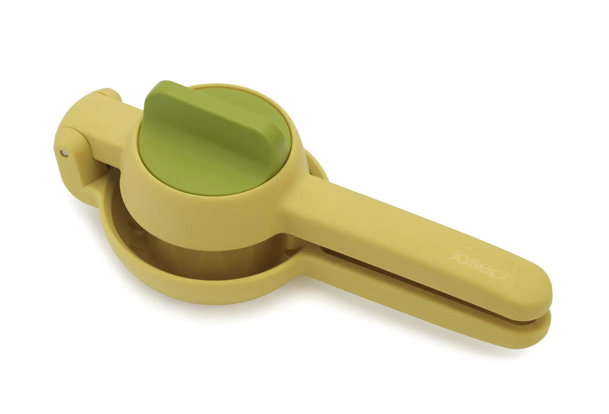 Angielska marka Joseph Joseph oferuje produkty charakteryzujące się uniklanymi designami oraz wysoką jakością. Prezentowany wyciskacz wyposażony został w pokrętło ułatwiające wyciskanie soku. Wykonany został z tworzywa sztucznego nie zawierającego BPA w zielonym i żółtym kolorze. Przeznaczony jest głównie do cytryn i limonek, jednak wyciśnie także sok z niedużych pomarańczy czy mandarynek. Produkt świetnie sprawdzi się do przygotowania lemoniady, soku czy wyciśnięcia soku do ciast. Wyciskacz posiada sitko, które zatrzyma pestki i miazgę z owoców, dzięki czemu wyciskany sok pozostanie czysty. Dodatkowo jest on łatwy w przechowywaniu i nadaje się do mycia w zmywarce.