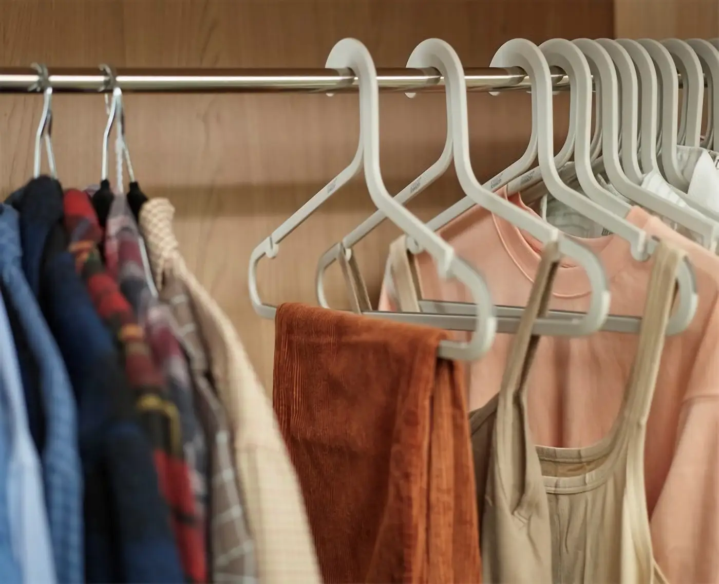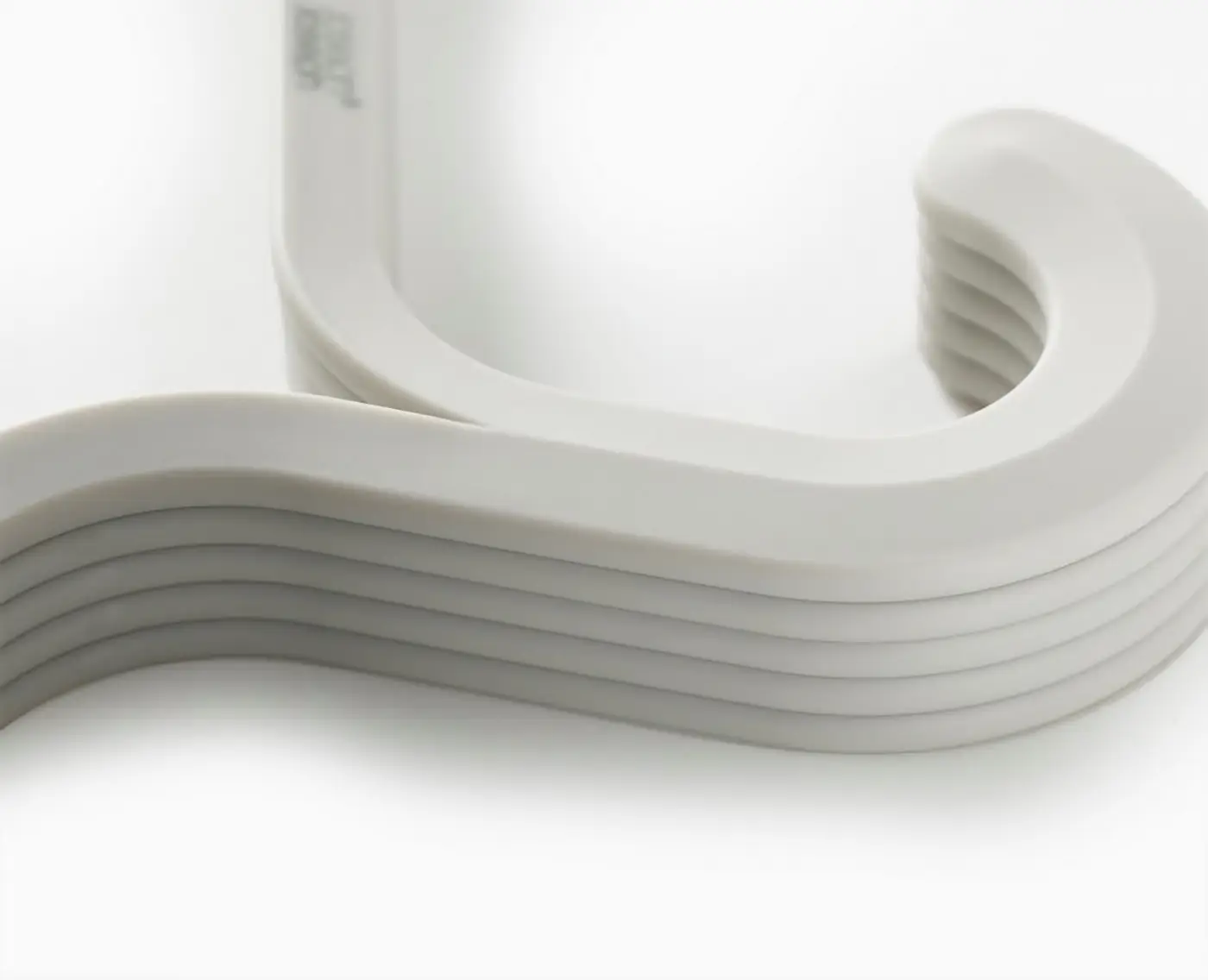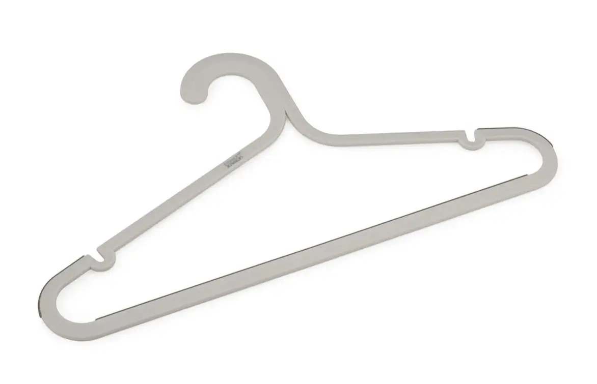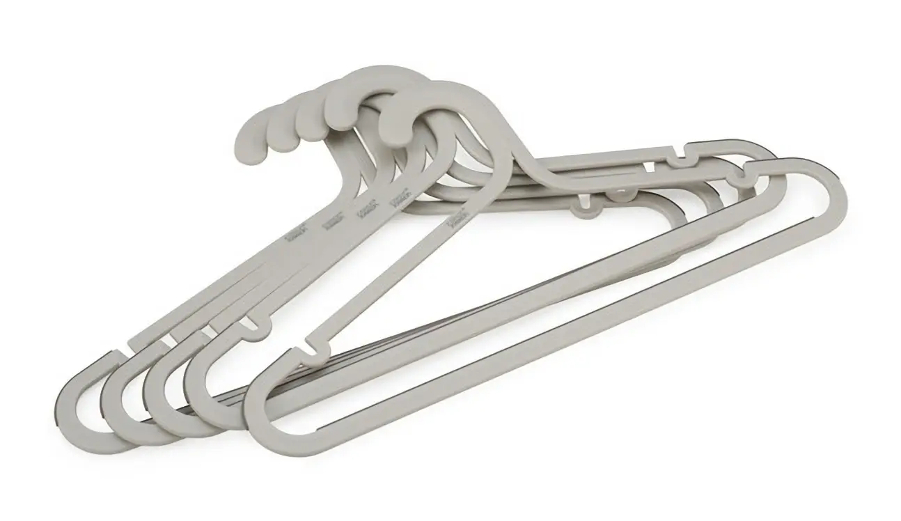 Prezentowany zestaw 5 wieszaków Anti-Tangle o wymiarach 41,3 x 22 cm (dł. x szer.) i kolorze ecru wykonano z tworzywa sztucznego w co najmniej 50% pochodzącego z recyklingu. Idealnie sprawdzi się do wygodnego wieszania różnych ubrań, znajdując zastosowanie w każdej garderobie lub szafie. Ich specjalna, smukła konstrukcja zapobiega plątaniu się na drążku, elementy antypoślizgowe na ramionach i drążkach na spodnie utrzymują odzież w miejscu, a wgłębienia pozwalają na wieszanie cienkich ramiączek. W razie konieczności czyszczenia, zestaw należy przecierać wilgotną ściereczką.