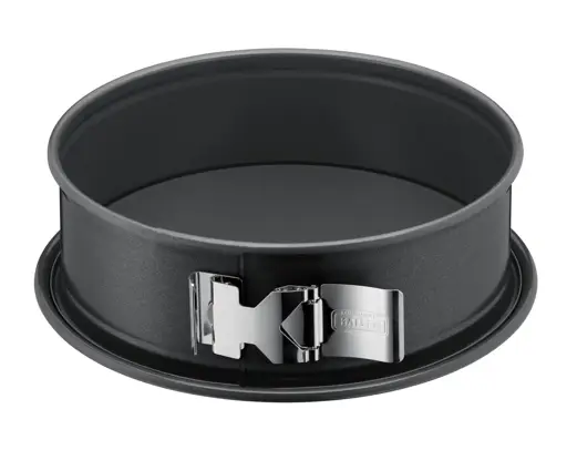 Okrągła tortownica do pieczenia ciast i tortów o średnicy 24 cm z serii Classic. Forma została wykonana z wysokiej jakości stali nierdzewnej, która została pokryta nieprzywierającą powłoką. Dzięki temu ciasto z łatwością odchodzi od formy po wyjęciu z piekarnika. Produkt posiada również wyjmowane dno oraz rozpinaną obręcz, co w dużym stopniu ułatwia wyjmowanie gotowego wypieku. Forma jest w szczególności polecana do pieczenia puszystych biszkoptów.