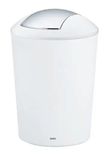 Prezentowany kosz o pojemności 1,7 L i wymiarach 15 x 21 cm (śr. x wys.) doskonale sprawdzi się do odpadów higienicznych, śmieci kuchennych lub biurowych czy np. przechowywania zabawek. Wykonano go z matowego tworzywa sztucznego w białym kolorze i stali. Kosz posiada uchylną pokrywkę, która jest łatwa w używaniu, a przy tym estetycznie zakrywa ona zawartość. W razie potrzeby produkt należy myć ręcznie.
