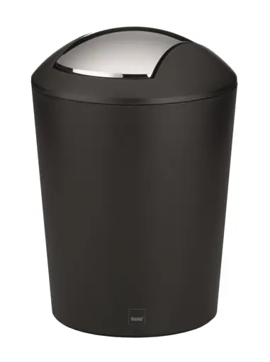 Prezentowany kosz o pojemności 3 L i wymiarach 17 x 26 cm (śr. x wys.) wykonano z metalu malowanego na czarny kolor. Dzięki pedałowemu systemowi otwierania można z niego korzystać bez użycia rąk, co zapewnia większą higieniczność i wygodę podczas używania, pozwalając na dostęp do niego gdy obie dłonie są zajęte. Wewnątrz kosz wyposażono w wyjmowane, wykonane z tworzywa sztucznego wiaderko z uchwytem, które ułatwia z kolei opróżnianie. W razie potrzeby produkt należy myć ręcznie.