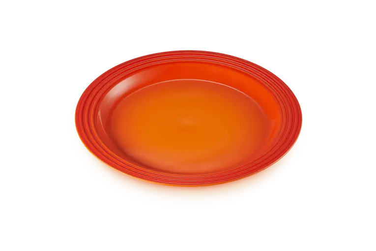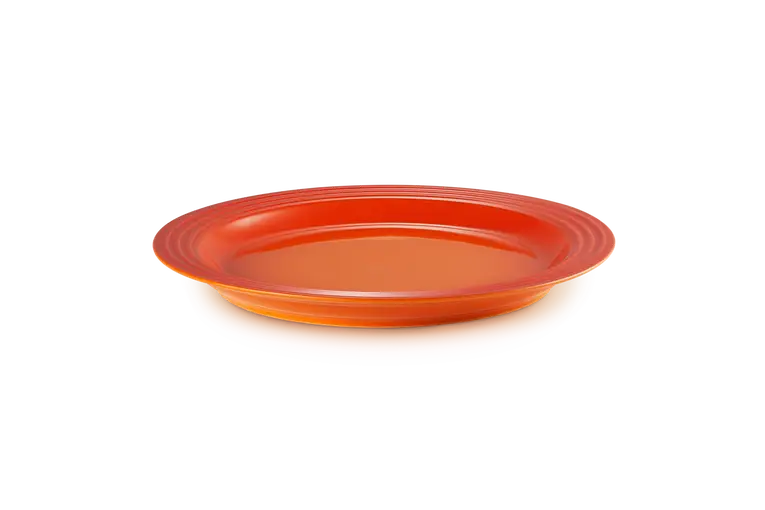 Duży talerz marki Le Creuset wykonany jest z kamionki. Ma 27 cm średnicy. Świetnie nadaje się do serwowania dań obiadowych czy przystawek. Szeroki wybór kolorów sprawia, że Twój stół nabierze pięknego charakteru. Talerz ma nieco zagłębioną podstawę, dzięki temu płyny nie będą się wylewały. Charakterystyczny design z trzema pierścieniami na krawędzi idealnie komponuje się z innymi naczyniami marki.
