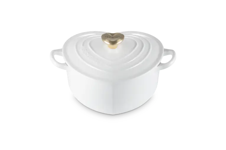 Wyjątkowa brytfanna w kształcie serca marki Le Creuset to niebanalny pomysł na prezent dla ukochanej osoby. Naczynie w zestawie posiada pokrywkę, jej odporna na temperaturę gałka również jest w kształcie serca. Brytfanna w unikalnym kształcie przeznaczona jest do gotowania gulaszy, dań jednogarnkowych, pieczenia i duszenia mięs. Wykonana z żeliwa konstrukcja równomiernie rozprowadza ciepło. Utrzymuje również dłużej temperaturę serwowanych w nich dań.
