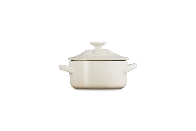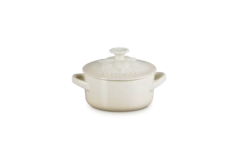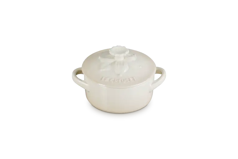 Mini cocotte z kolekcji Jardin marki Le Creuset to kompaktowe naczynie o pojemności 250 ml. Wykonane z wysokiej jakości kamionki, łączy w sobie funkcjonalność i estetykę. Delikatne, tłoczone wzory inspirowane kwiatami oraz subtelny pastelowy odcień nadają mu wyjątkowego charakteru, idealnego do serwowania pojedynczych porcji dań, deserów czy przystawek.
