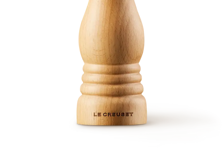 Klasyczny młynek do pieprzu marki Le Creuset ma naturalny design. Wykonany jest z drewna bukowego. Ceramiczny mechanizm jest wytrzymały i odporny na korozję. Charakterystyczna dla marki gałka ze stali nierdzewnej na górze służy do ustawienia grubości mielenia.