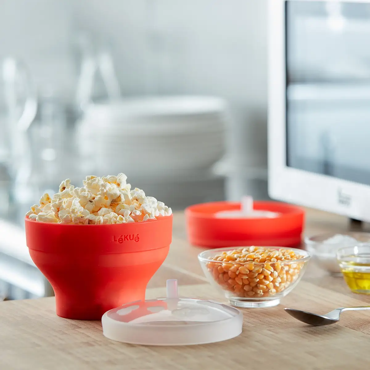 Lekue - Zestaw do popcornu do mikrofalówki dla 2 osób