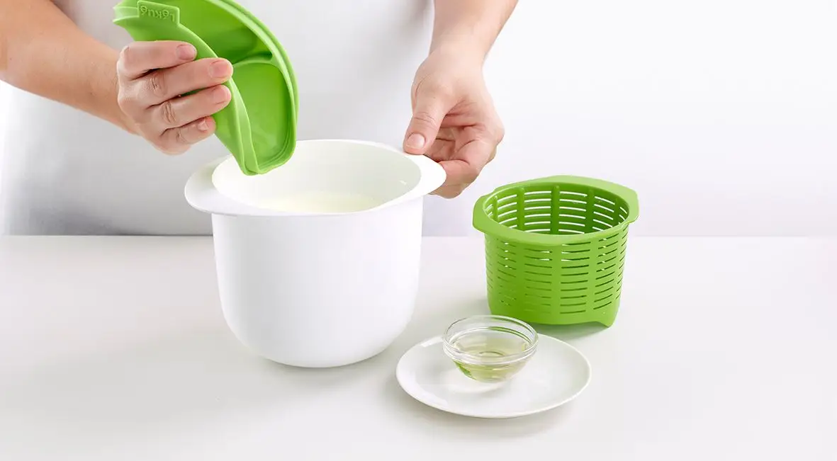 Zestaw do robienia sera marki Lékué to innowacyjny zestaw kuchenny, który pozwala na przygotowanie domowego sera w prosty sposób. W komplecie znajduje się również książka z przepisami, która krok po kroku prowadzi przez proces tworzenia różnorodnych serów.