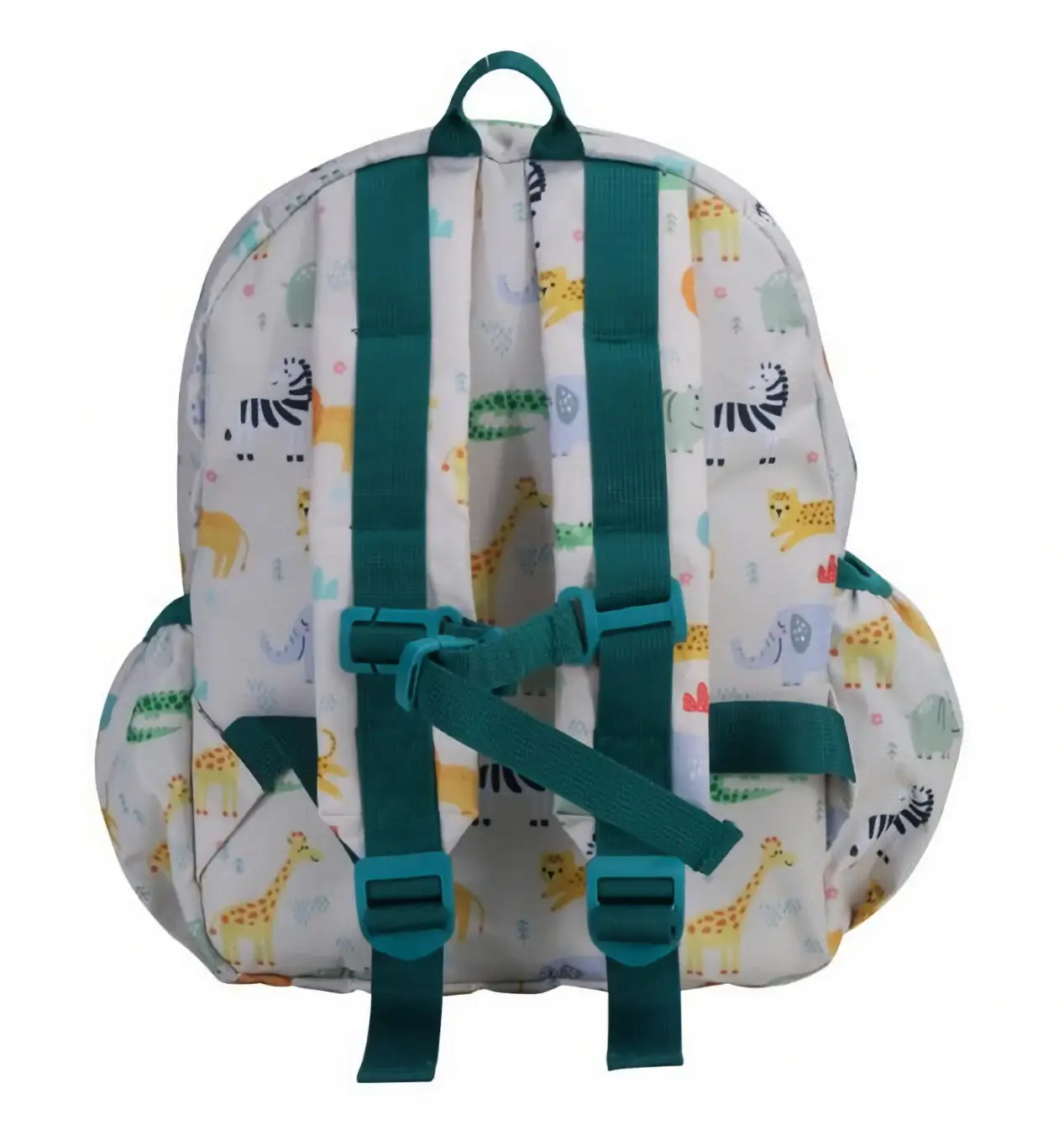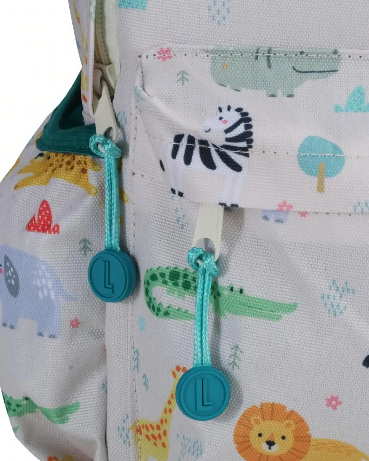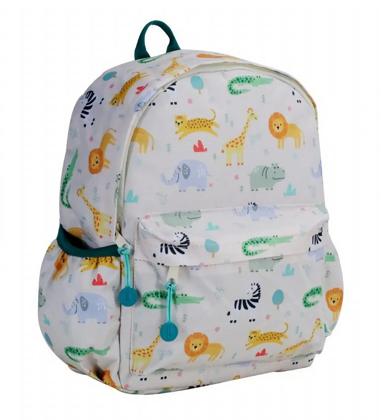 Prezentowany plecak w szary-zielonym kolorze ozdobiony został wzorem Safari przedstawiającym zwierzęta z Afryki. Ma on wymiary 30,5 x 23,5 x 10 cm i wykonano go z materiału z recyklingu butelek PET (RPET). Poza byciem dość ekologicznym, materiał ten jest również wodoodporny, dzięki czemu umieszczone w plecaku rzeczy będą bezpieczne podczas deszczu. Produkt idealnie nadaje się do szkoły czy na wycieczkę. Zapinany na klatce piersiowej pasek oraz regulowane, wyściełane szelki pozwalają na wygodne noszenie go na plecach i indywidualne dostosowanie. Umieszczona z boku kieszonka umożliwia przenoszenie butelki, a przednia kieszeń bez problemu mieści różne drobiazgi, tak by nie trzeba ich było szukać po głównej komorze. Także otwieranie i zamykanie plecaka będzie łatwe - posiada on praktyczne, silikonowe suwaki. Dodatkowy uchwyt u góry pozwoli natomiast w razie potrzeby przenosić go w ręce. Ponadto plecak posiada wewnątrz etykietę do podpisania, na której można umieścić dane dziecka i numer telefonu, by mieć pewność że nie zagubi się on przypadkiem.