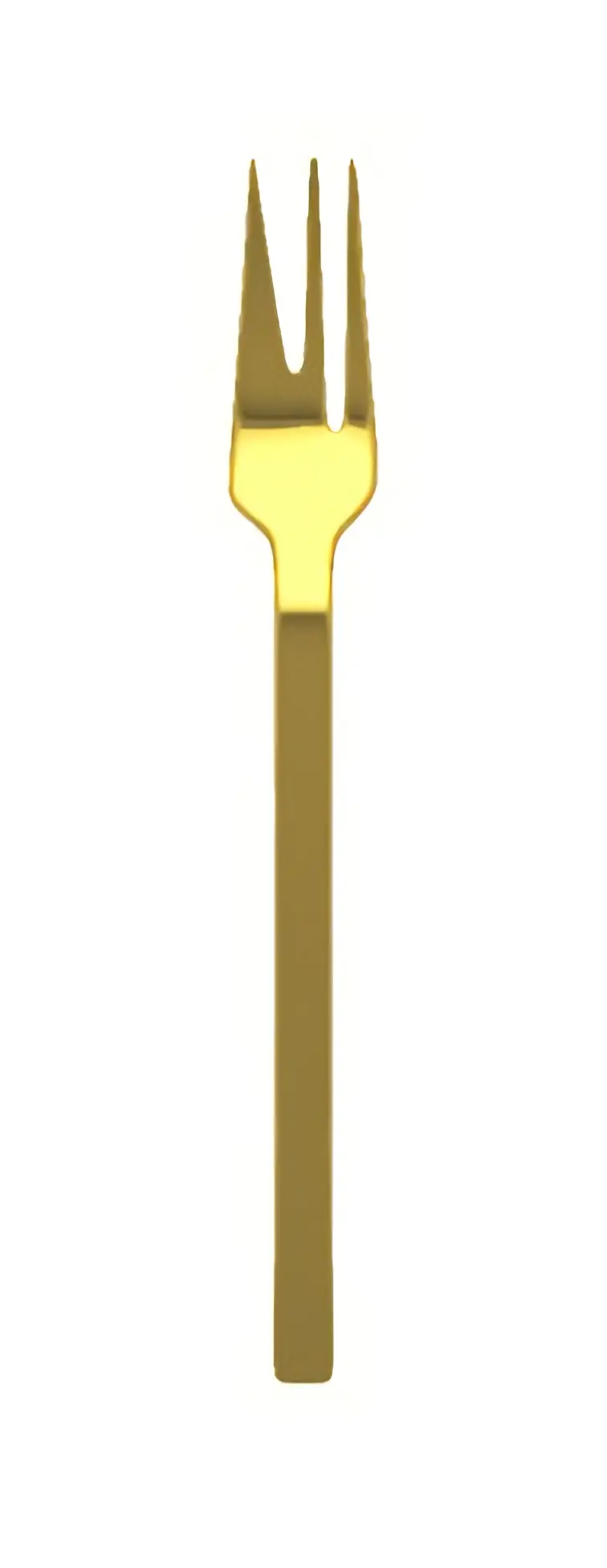 Prezentowany zestaw złożony z 6 widelczyków do ciasta zapakowany został w pudełko prezentowe. Wszystkie jego elementy wykonane zostały ze stali nierdzewnej 18/10 i wyprodukowane we Włoszech. Ich matowe wykończenie w złotym kolorze powstało podczas procesu próżniowego, w którego trakcie jony azotku cyrkonu i tytanu osiadają na powierzchni sztućców, tworząc warstwę która nie tylko estetycznie się prezentuje ale i zwiększa odporność na uszkodzenia. Widelczyki nadają się do mycia w zmywarce. Można je będzie zakupić tak do prywatnego użytkowania, jak i do profesjonalnego.
