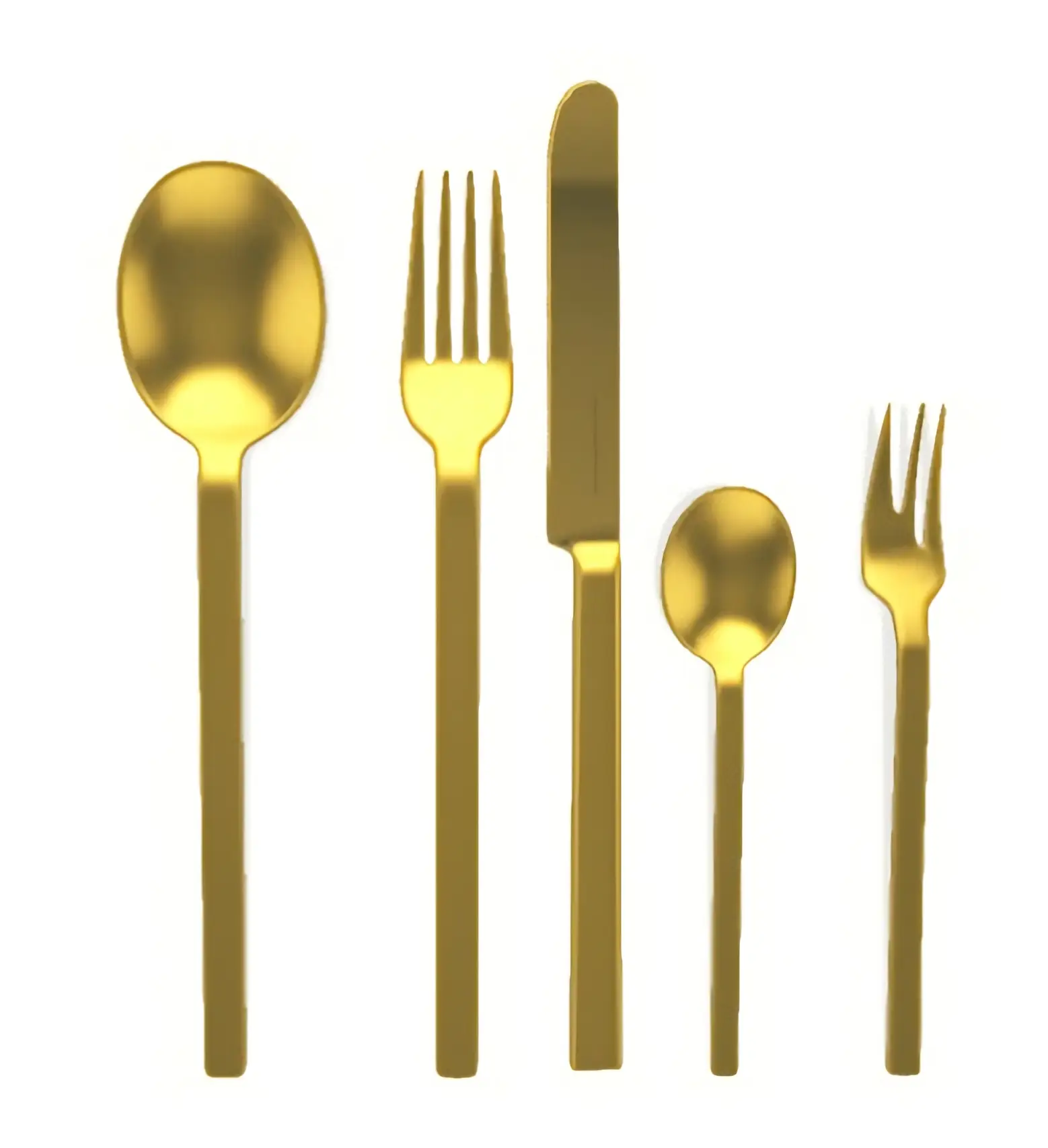 Prezentowany zestaw sztućców w kolorze złotym z matowym wykończeniem wykonany został ze stali nierdzewnej 18/10, dzięki czemu są one wytrzymałe i odporne na rdzewienie. Komplet zawiera podstawowe sztućce: łyżki stołowe, noże stołowe i widelce oraz łyżeczki i widelczyki do ciasta, i jest on przeznaczony dla maksymalnie 6 osób. Odpowiednio dobrane wymiary wpłyną na wygodę używania. Dodatkowo zestaw estetycznie się prezentuje. Doskonale sprawdzi się on zarówno do użytku domowego, jak i do profesjonalnego, świetnie odnajdując się w lokalach gastronomicznych. Ponadto dodatkową zaletą kompletu będzie możliwość łatwego utrzymania w czystości - sztućce nadają się do mycia w zmywarce.