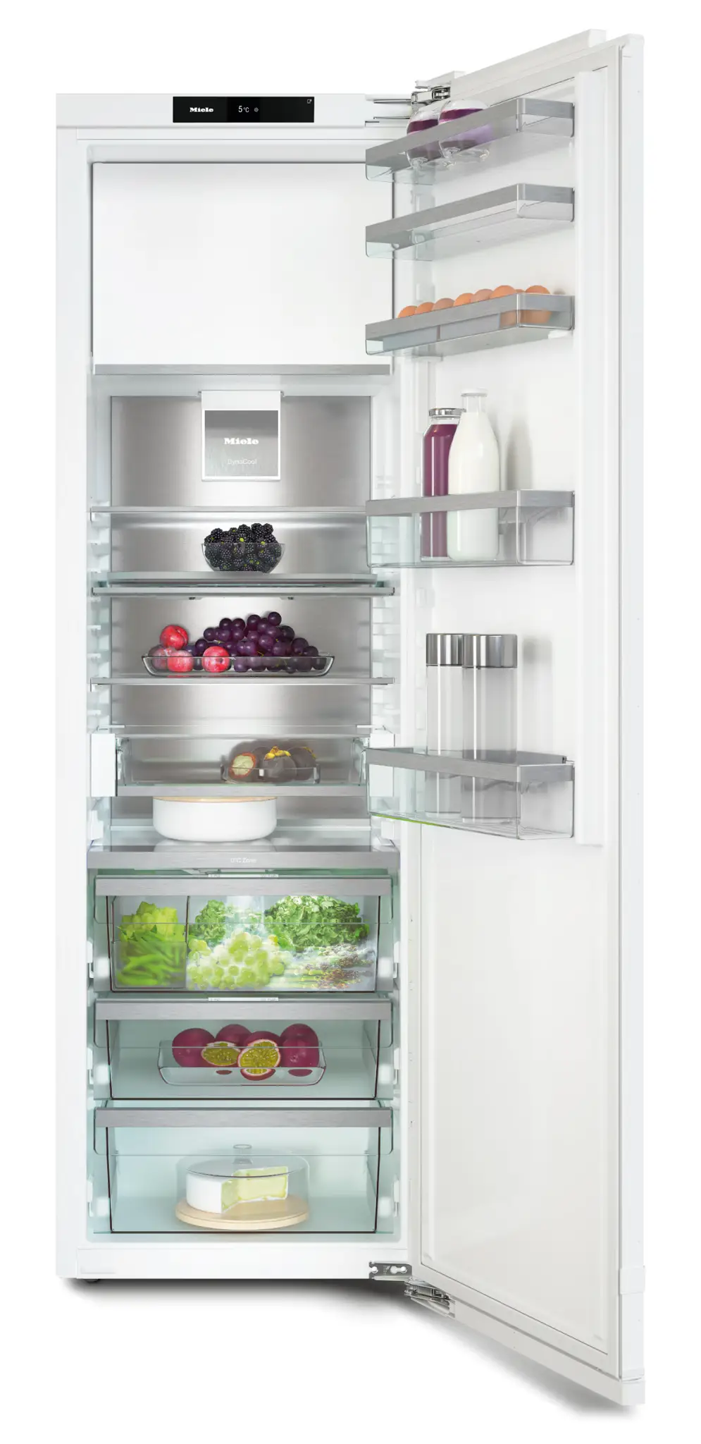 Urządzenia do zabudowy są idealnym rozwiązaniem dla tych, którzy preferują jednolite powierzchnie i minimalizm lub po prostu chcą ukryć urządzenia AGD za meblami. Oferowana przez Miele chłodziarka K 7798 C R z drzwiami z zawiasami po prawej stronie idealnie spełni swoje zadanie, zapewniając komfort i praktyczność użytkowania. Całkowita pojemność 276 L pozwoli łatwo pomieścić dużą ilość żywności oraz nawet nieporęczne naczynia - ComfortSize. Również zastosowane w urządzeniu technologie takie jak ActiveDoor, PerfectFresh Active, FlexiTray, DynaCool czy SoftClose podnoszą komfort korzystania. Chłodziarkę można podłączyć za pośrednictwem domowego routera WLAN i chmury Miele Cloud do innowacyjnego systemu Miele@home.
