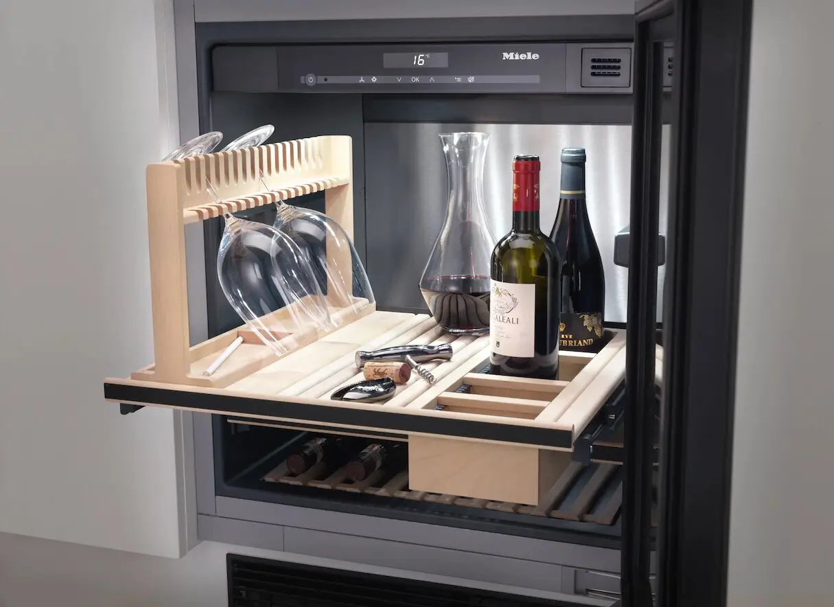 Razem z urządzeniem otrzymujesz wyjątkowy zestaw SommelierSet zawierający profesjonalny komplet narzędzi do dekantacji wina, zawsze pod ręką. Ponadto, chłodziarka oferuje dodatkowe udogodnienia, które zmienią picie wina w prawdziwą celebrację: Rozkosz picia ze schłodzonych kieliszków i perfekcyjne temperowanie napoczętych butelek wina.