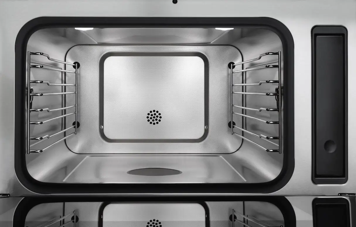Komora gotowania o pojemności użytkowej 40 l sprawia, że możesz zmieścić w niej nawet duże naczynia do gotowania, na przykład na całe kurczaki lub ryby. Wnętrze urządzenia wykonano ze stali nierdzewnej o strukturze lnianego płótna co gwarantuje szybkie i wygodne czyszczenie.
