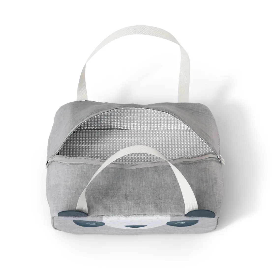 Prezentowana termiczna torba podróżna dla dzieci o pojemności 6,5 L przeznaczona jest do wygodnego przenoszenia lunchboxu z linii Wonder wraz z innymi niezbędnymi akcesoriami np. sztućcami, butelką czy dodatkowymi przekąskami. Świetnie sprawdzi się do szkoły, na wycieczki i pikniki, dzięki zapięciu na zamek będąc łatwą w zamykaniu i otwieraniu. Izolująca wyściółka pozwala na utrzymanie przenoszonego jedzenia w niskiej temperaturze podczas transportu. Dodatkowo pozwala ona na łatwe oczyszczenie wnętrza torby z ewentualnych zabrudzeń - wystarczy przetrzeć ją zwilżoną gąbką. Torba posiada również dwa długie uchwyty które umożliwiają jej łatwe i wygodne przenoszenie. Jej design z pandą pasować będzie do pojemnika Wonder z tym samym wzorem, jednak połączyć ją można również z innymi produktami.
