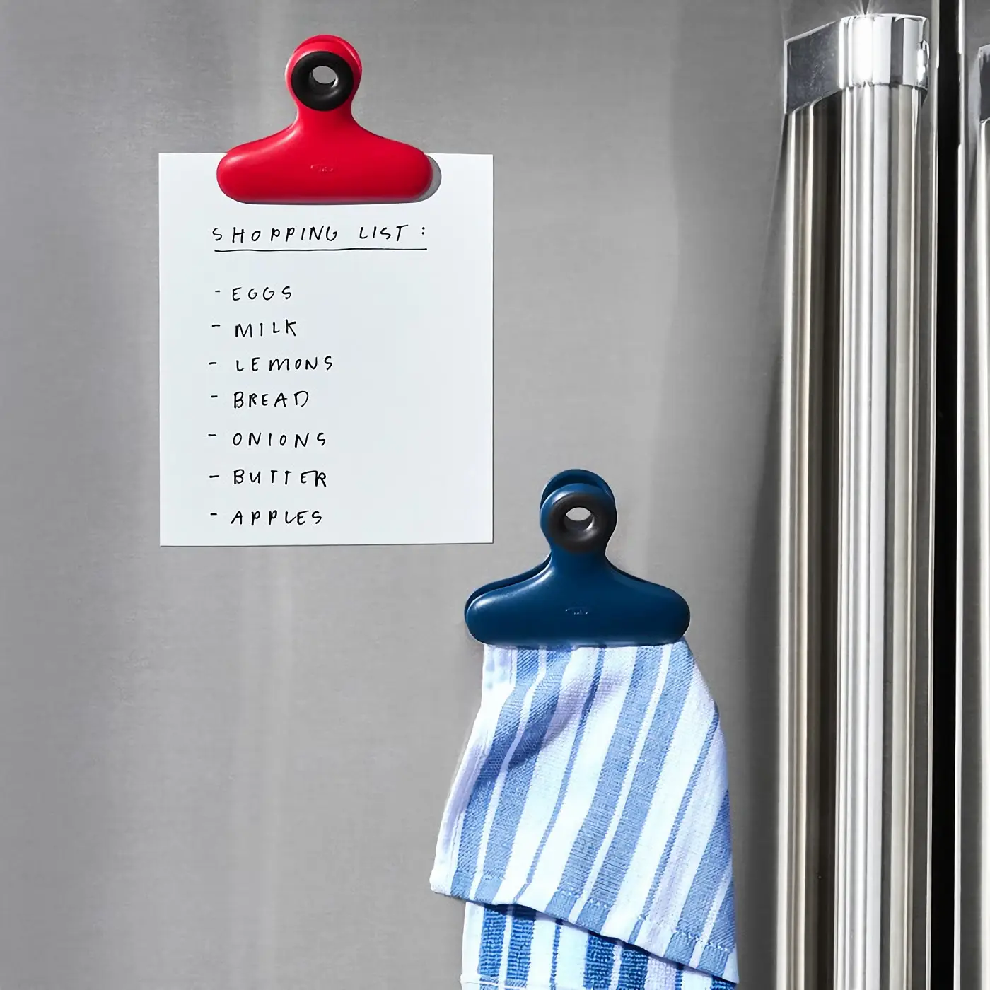 Prezentowany zestaw 4 klipsów z magnesami Good Grips wykonano z tworzywa sztucznego (każdy z nich ma inny kolor). Idealnie sprawdzi się do zamykania opakowań z płatkami lub przekąskami, zachowując ich świeżość na dłużej. Na klipsach zawiesić będzie można także notatnik, ręcznik czy kalendarz. Antypoślizgowe uchwyty klipsów dodatkowo ułatwiają użytkowanie, a magnesy w tylnej części umożliwiają zaczepienie ich np. na lodówce.