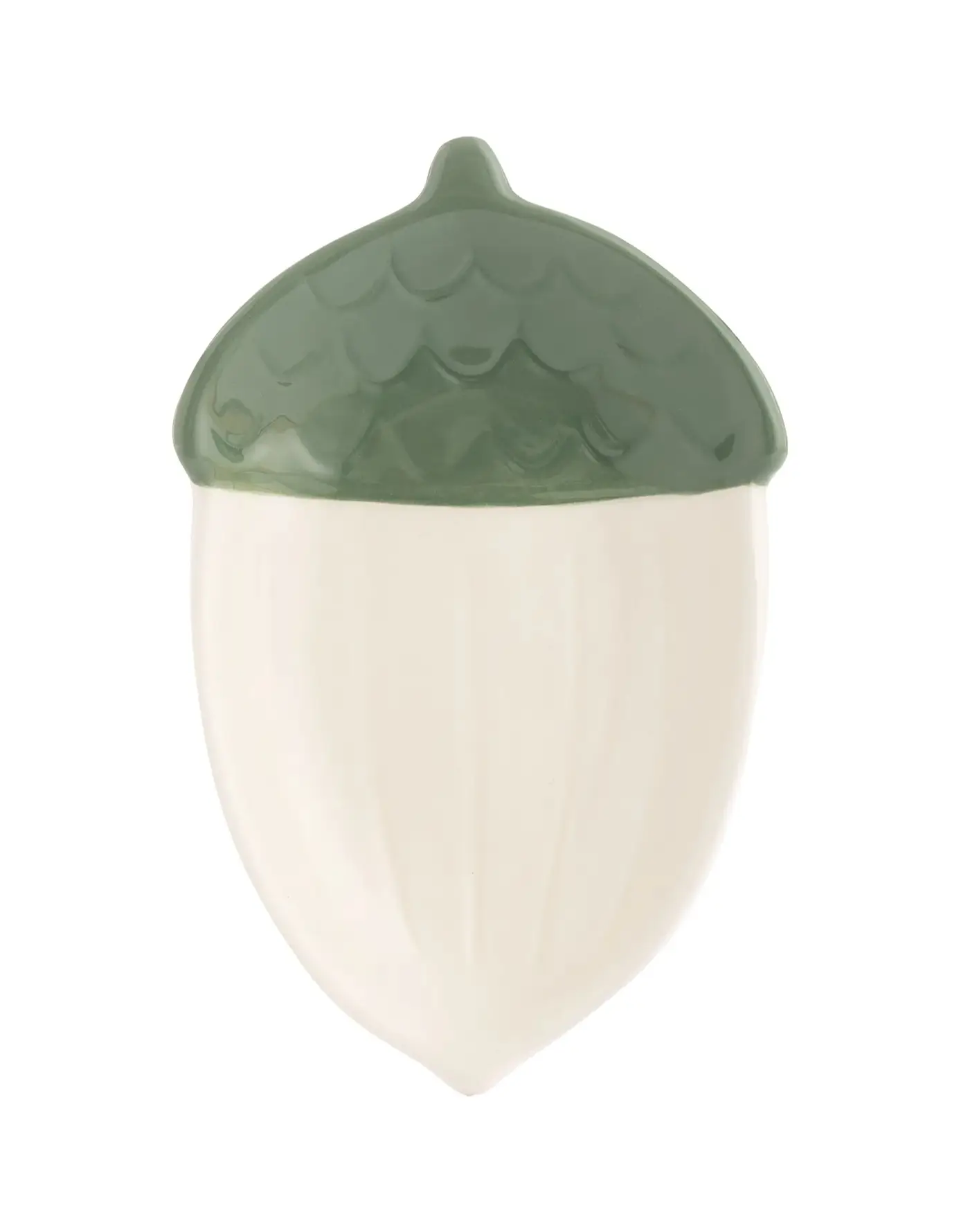 Prezentowana podstawka na łyżkę o wymiarach 13,5 x 8,7 x 2,2 (dł. x szer. x wys.) przykuje uwagę swoim estetycznym designem i leśnym motywem - ma kształt żołędzia. Wykonano ją z ręcznie malowanej ceramiki, dzięki czemu każda jest wyjątkowa. Materiał ten oprócz aspektów wizualnych charakteryzuje się również trwałością oraz brakiem interakcji z żywnością (nie chłonie zapachów i nie wpływa na smak). Produkt doskonale sprawdzi się podczas przygotowywania różnych dań, pozwalając na odłożenie łyżki kuchennej tak by nie brudziła blatu i była łatwo dostępna pod ręką. By utrzymać go w czystości należy go myć wyłącznie ręcznie.