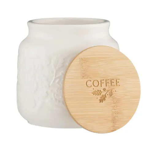Prezentowany pojemnik o pojemności 0,7 L i wymiarach 11,6 x 12,5 cm (śr. x wys.) wykonano z kamionki w białym kolorze, a jego pokrywkę z bambusa z silikonową uszczelką dla lepszej szczelności. Przeznaczony jest on na cukier sypki lub w kostkach, o czym informuje napis w języku angielskim umieszczony na pokrywce. By utrzymać go w czystości należy go myć wyłącznie ręcznie.